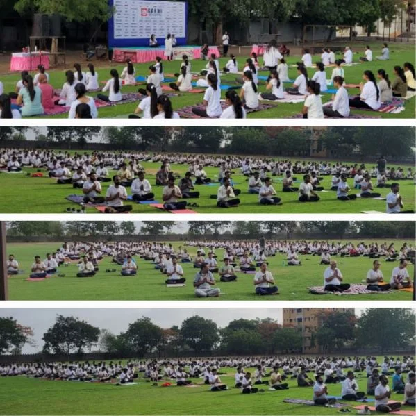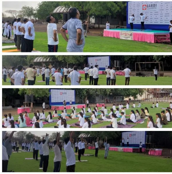 Gardi Vidyapeeth celebrated the 10th International Yoga Day on 21st June 2024 from 7:30 AM to 9:30 AM with great enthusiasm. The event saw active participation from respected Trustee Jay Mehta Sir, Principals, Vice Principals, faculty, staff, and students of all institutes under the Gardi Vidyapeeth banner. A large crowd gathered on the ground, all dressed in a coordinated white and black dress code, creating a visually serene and unified atmosphere. The session featured guided yoga practices promoting physical and mental well-being, reflecting the shared commitment to a healthier and more mindful lifestyle.