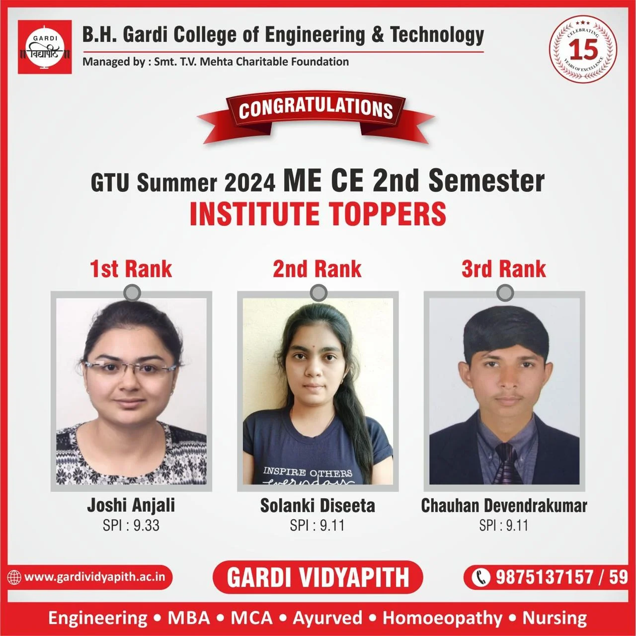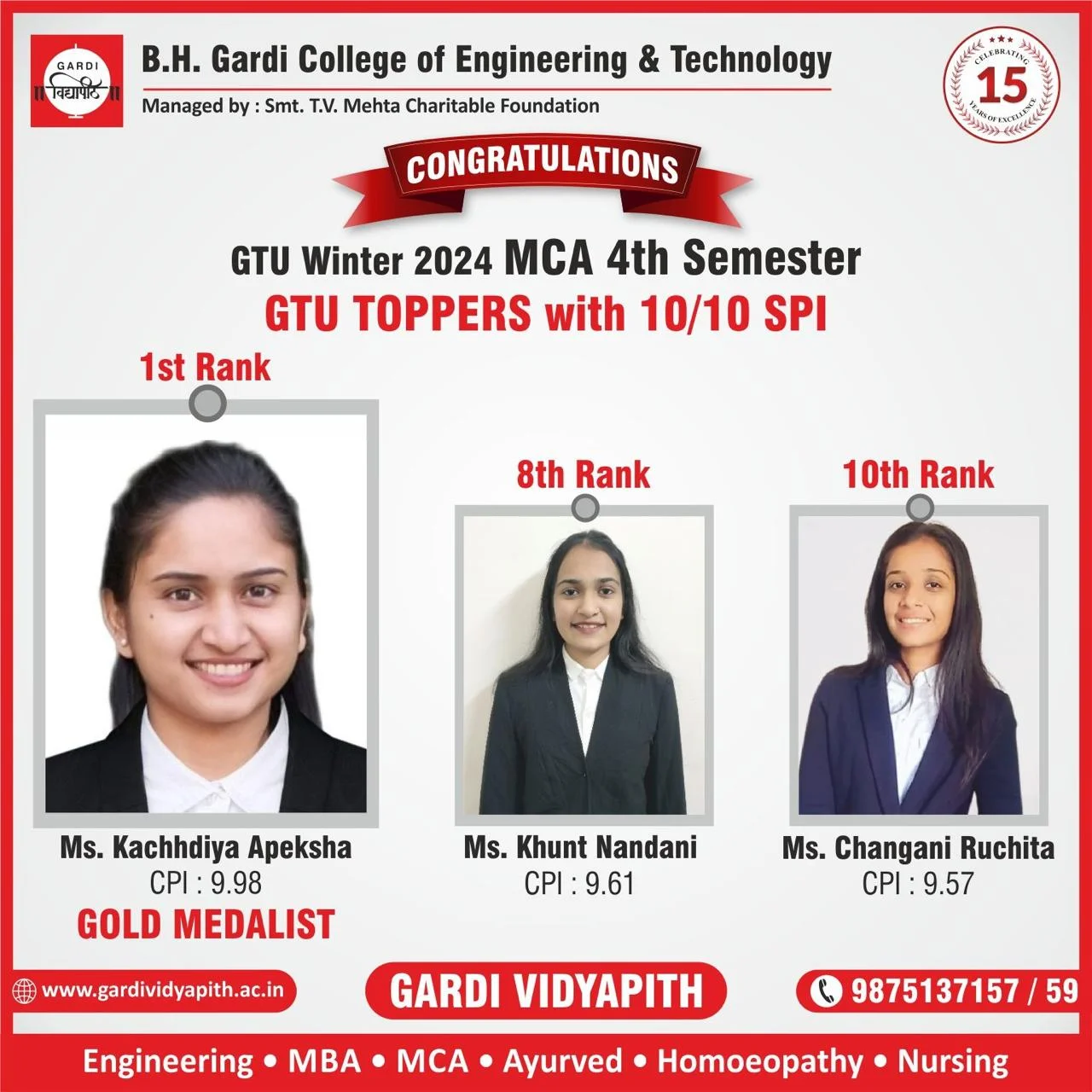 The event was organised by Smt T V Mehta Charitable Trust to celebrate 15 years of success of Gardi Vidyapith. In this event total 19 teaching staff members were awarded in three different categories
